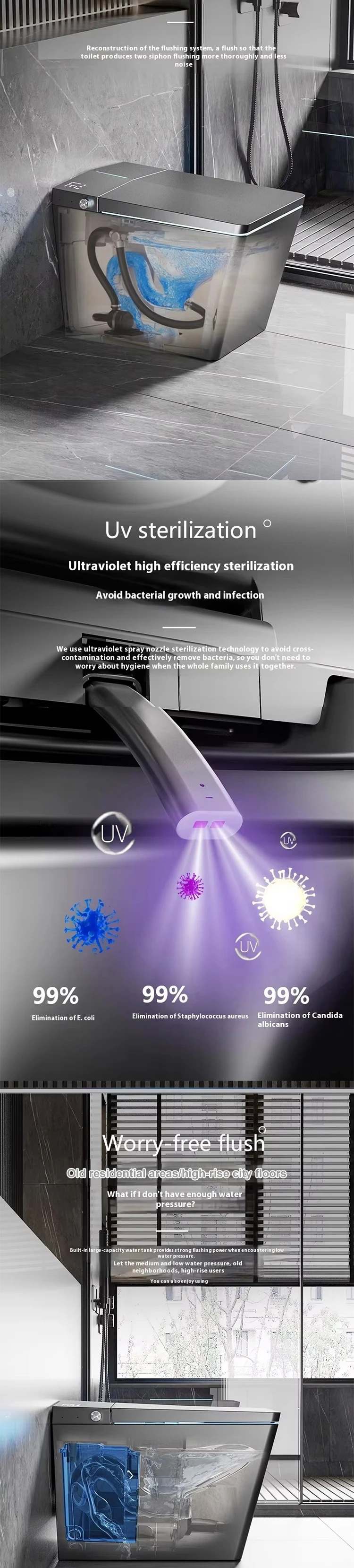 Female Washing/Hip Cleaning/Massage Washing/Moving Washing/Self-cleaning Nozzle/One Key Stop/Position Adjustment/Heated Water Instantly/Seat Induction/Seat Heating/Warm Air Drying/Wind Temperature Adjustment/Water Temperature Adjustment/Water Pressure Adjustment/Auto Flushing/Flush During Power Failure/Mute Slow Down/Night Light/Leakage Protection/Energy Saving/Double Filtration/One Key Side Knob/Smart Cleaning Glaze/Flame Retardant Material/12V Safety Voltage/Smart Remote/Anti Bacterium Seating/Zero Water Pressure/LED Screen/Foot Sensor Flushing/ Baby Washing Modes/Color Light