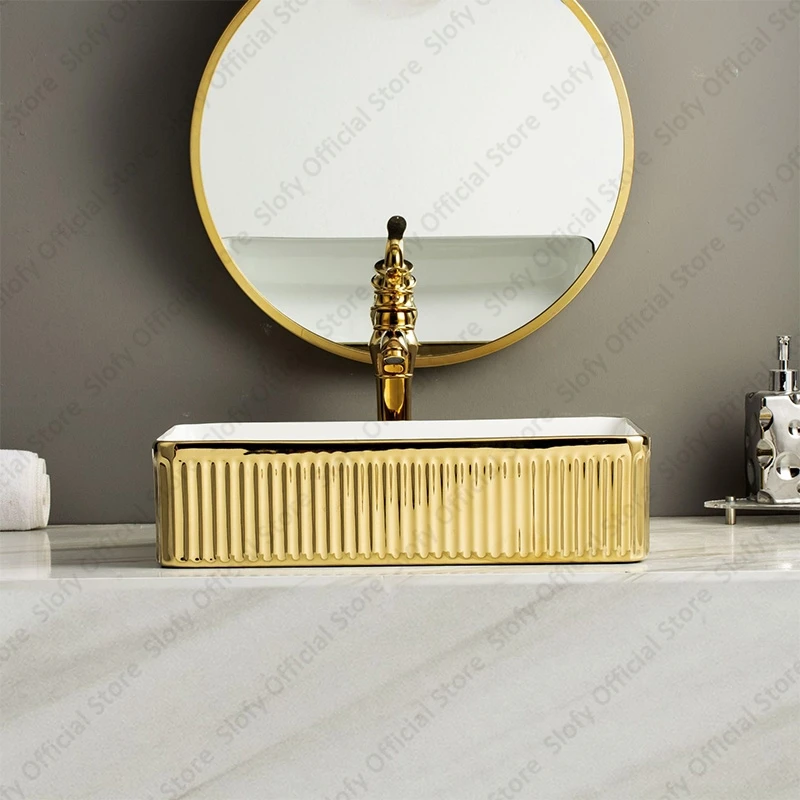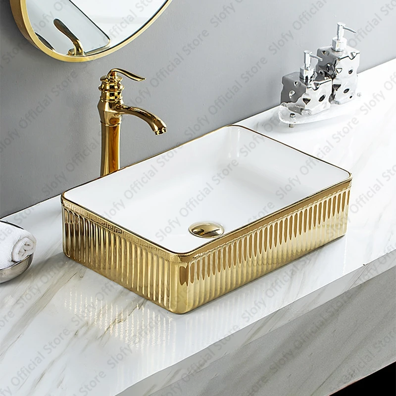 Rectangle Wash Basin Luxury Villa Bathroom Basins Ceramic Countertop Basins Modern Vanity Sink For Balcony Home Hotel Decoration