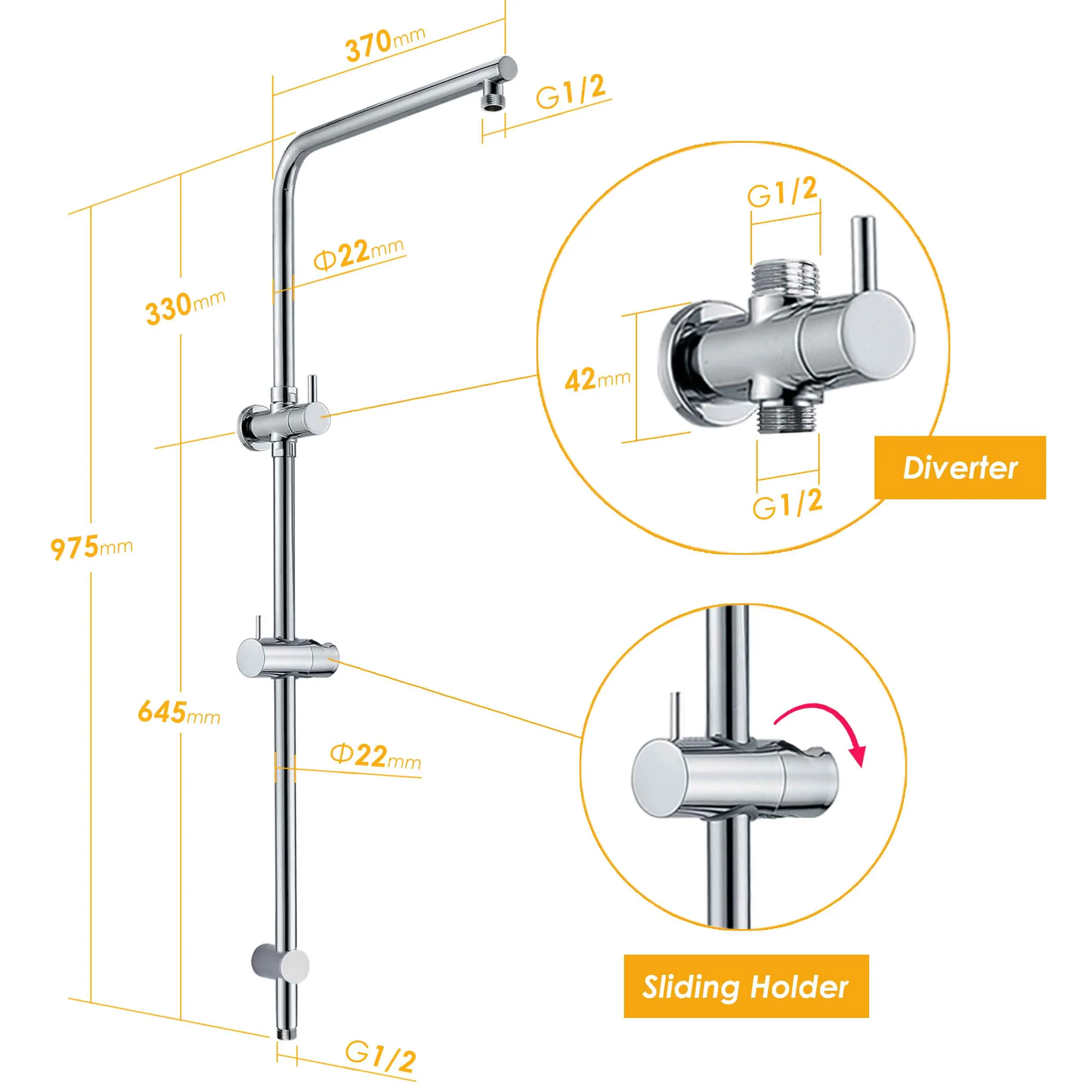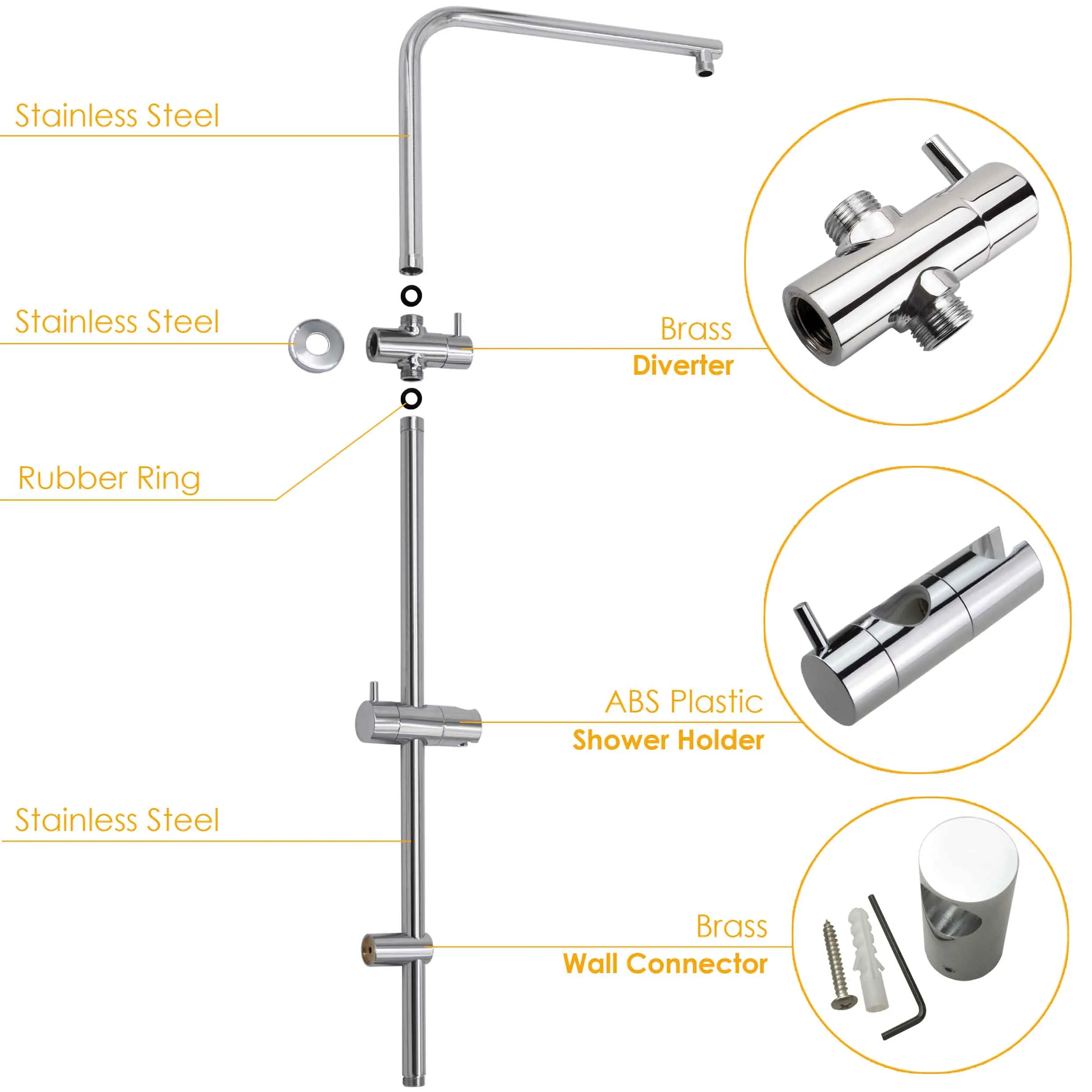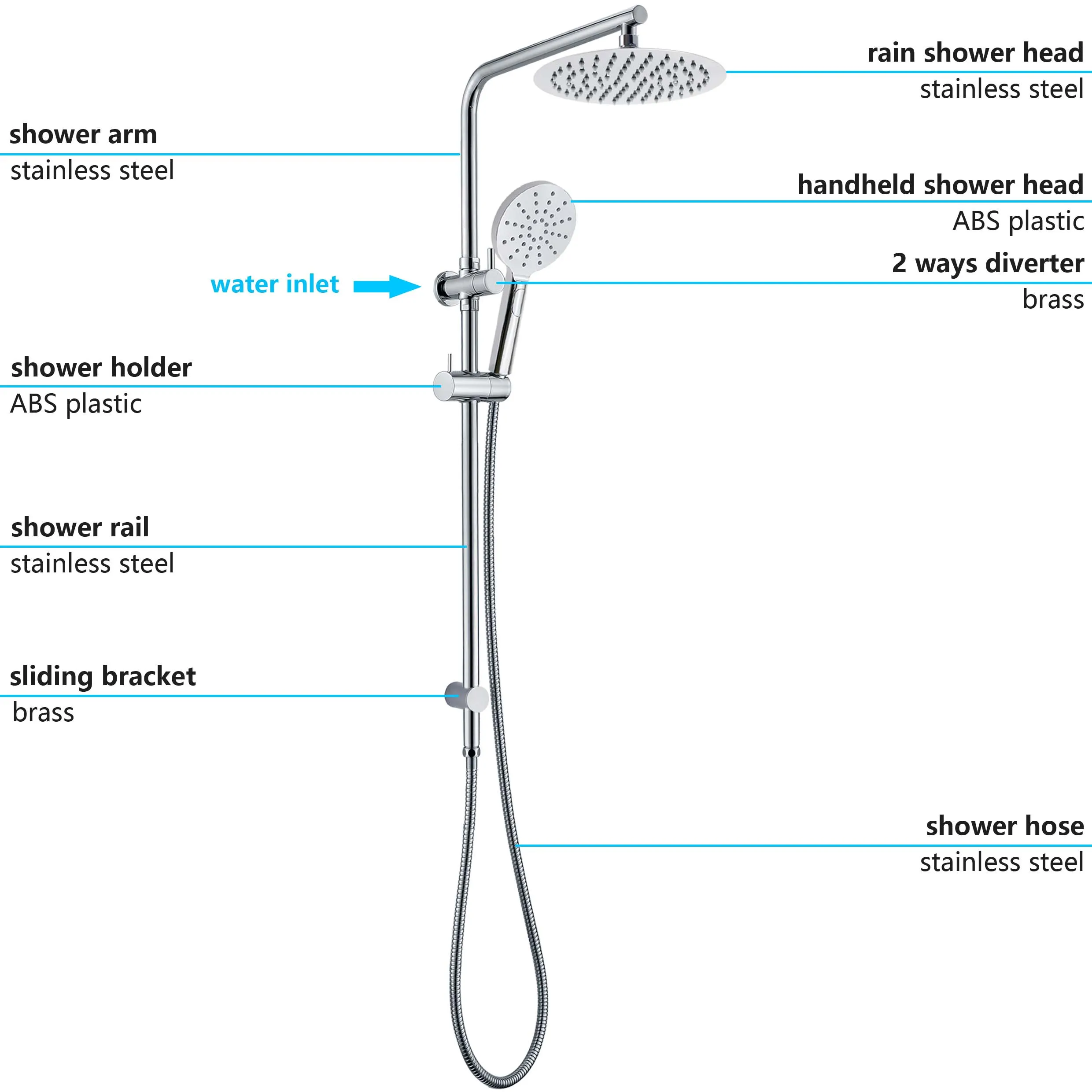 Package Includes: rain shower head+handheld shower+shower rail+1.5m hose