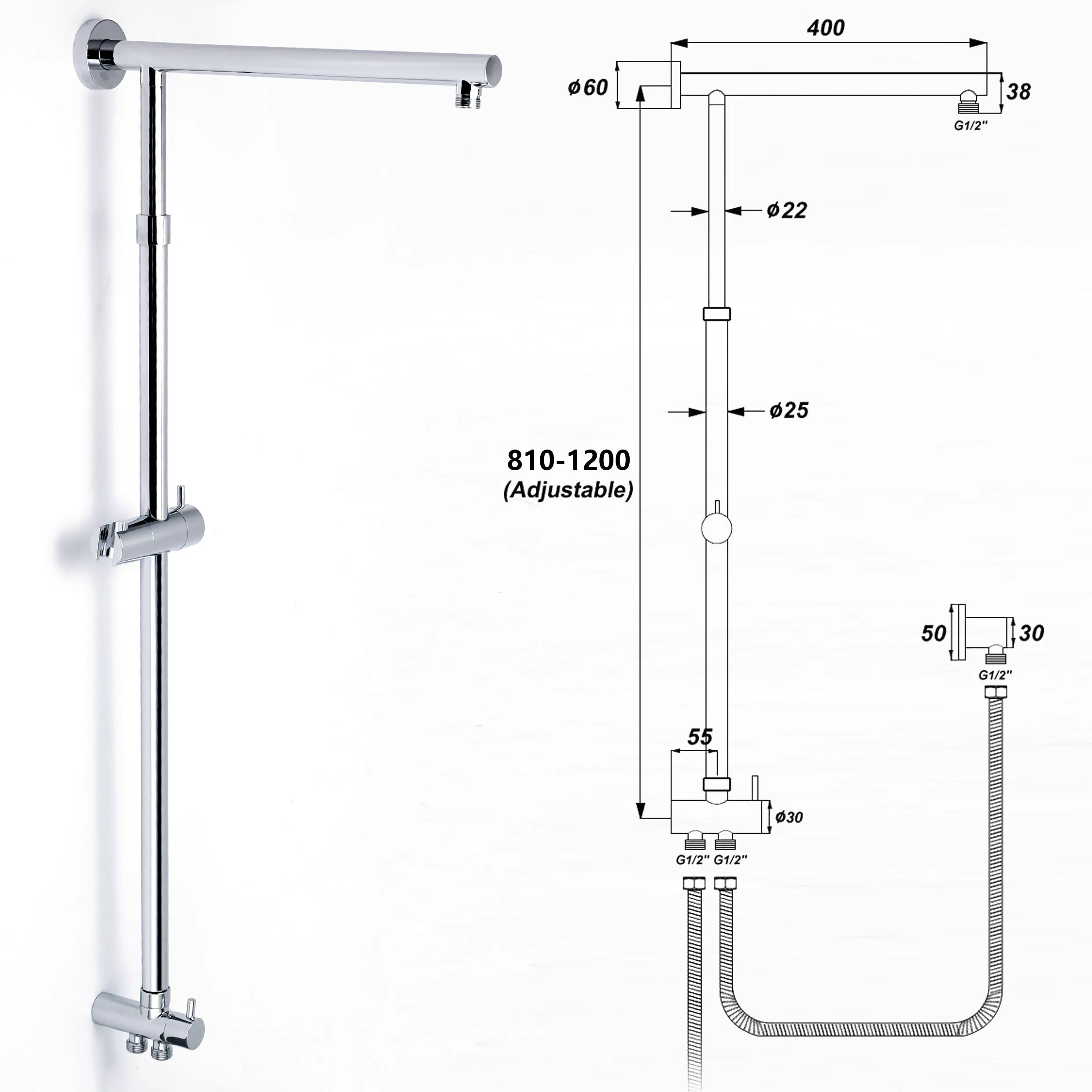 Shower Arm and Sliding Rail